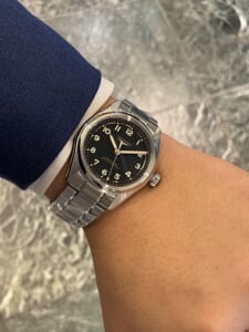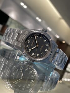 こちらの「スピリット パイロット」には、マイクロアジャスト(微調整)式フォールディングクラスプ付きのステンレススティール製ブレスレットが装着されており、現代のライフスタイルにマッチするようデザインされています。