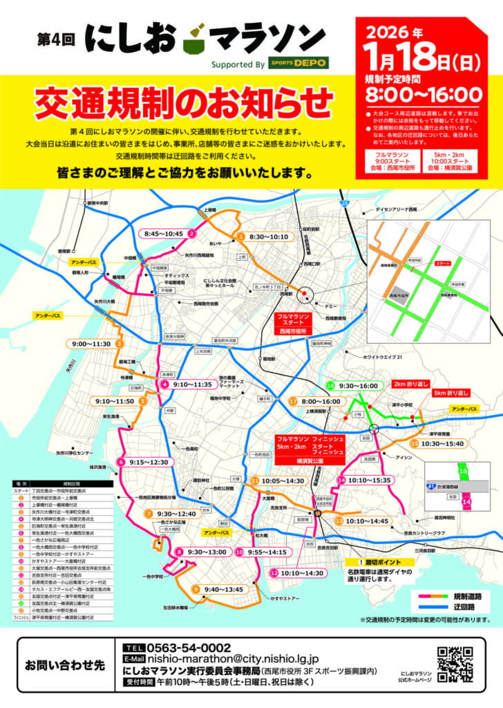 ※本日はマラソンの関係で、西尾市近郊に交通規制がございますのでご注意ください。