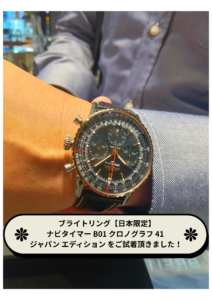 ブライトリング【日本限定】ナビタイマー B01 クロノグラフ 41 ジャパン エディション をご試着頂きました!
