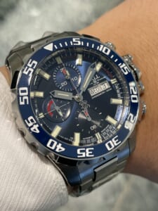 元々、ハイスペックを売りにするダイバーズクロノグラフでしたが、昨年登場したこちらのNEDUは、新色としてブルーが加わり、使用するチタンのグレードを2→5にアップグレードして登場しました。