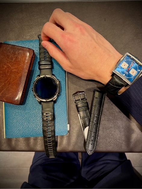 今着用しているガーミンフェニックス8は施工済み!シリコンラバーベルトは保護されるだけでなく色に深みがでて質感が良くなりました!