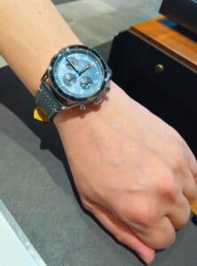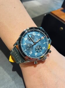 お待ち頂いている革ベルトに付け替えて頂いてもかっこいいと思います!