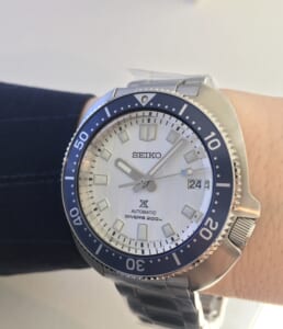 どっしりとした丸みのあるケースが、ダイバーズウォッチらしく存在感を放ちます。
