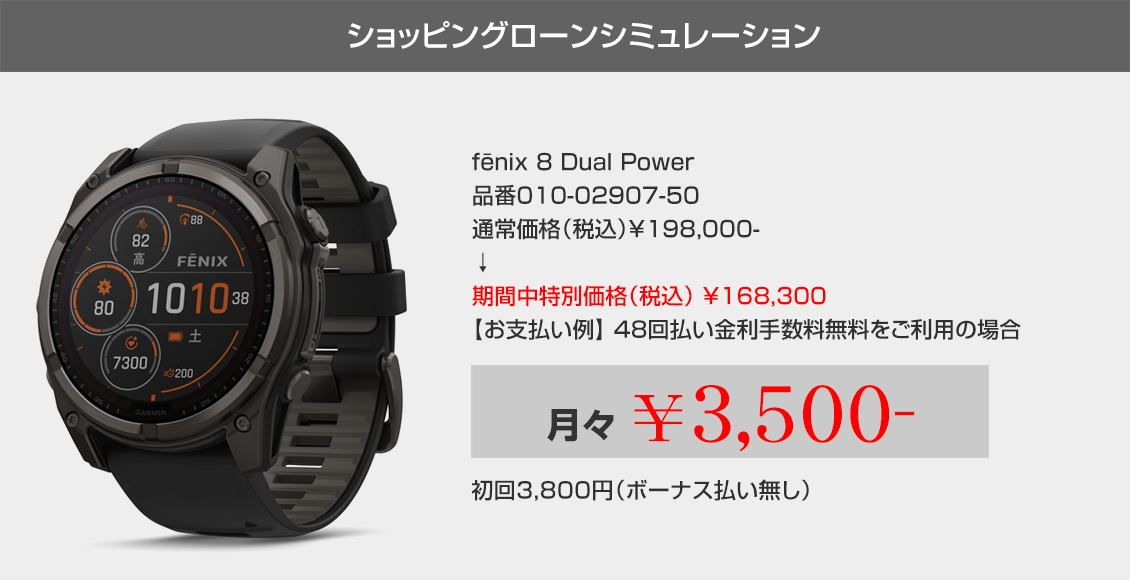 月々 ¥3,100初回¥5,020(ボーナス払い無し)fēnix 8 Dual Power