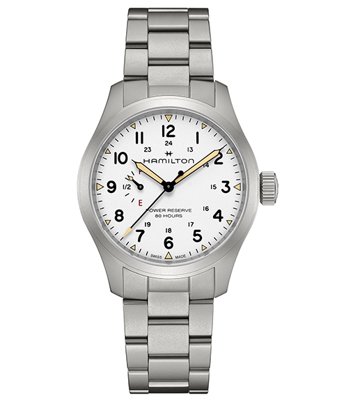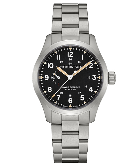 クラシックなフィールドウォッチを現代に継承する「カーキ フィールド」コレクションの伝統的なデザインに、現代的な機能や最新のウォッチメイキング技術を取り入れて登場した「カーキ フィールド メカニカル パワーリザーブ 40mm」。