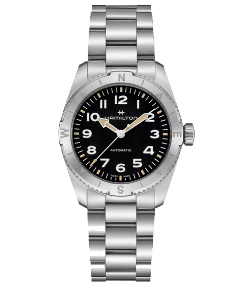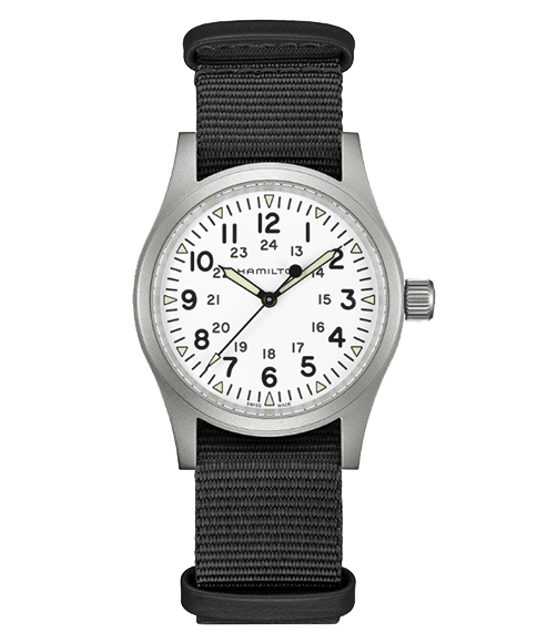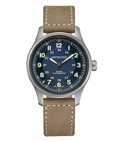 軍用時計をルーツに持つ「カーキ フィールド」コレクションは、堅牢でシンプル、そして高性能で、登山やハイキングなどで正確な時刻を腕元で刻み、アクティブな時を過ごす人々をサポートし、あらゆるシーンで活躍するフィールドウォッチの代表格のコレクションです。