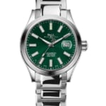 [ SPEC ]掲載されている商品はラインナップのご紹介となっております。カタログ番号 0000000048 サイズ 40mm 文字盤 グリーン 機能 3針 インデックス バー ケース素材 ステンレススチール ベルト ブレスレット ベゼル ノーマル 日付 日付あり 防水性 100M 動力 自動巻き