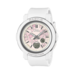 [ SPEC ]カタログ番号 0000007118 サイズ 41.5mm 文字盤 ホワイト 機能 デジタル+アナログ インデックス バー ケース素材 ポリカーボネート ベルト 樹脂バンド(バイオマスプラスチック) ベゼル ノーマル 日付 日付あり 防水性 100M 動力 クォーツ アクティブな女性に向けた耐衝撃・カジュアルウオッチBABY-Gから、フェイスに花柄をあしらったアナログウオッチです。掲載されている商品はラインナップのご紹介となっております。