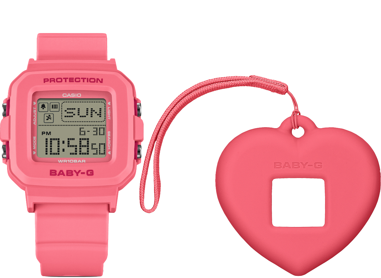 [ SPEC ]カタログ番号 0000007046 サイズ 39mm 文字盤 デジタル 機能 デジタル ケース素材 ポリカーボネート ベルト 樹脂バンド ベゼル ノーマル 日付 日付あり 防水性 100M 動力 クォーツ 好みに合わせて使い方が楽しめる「BABY-G+PLUS」シリーズから、ハート型の時計ホルダーのポップなモデルです。掲載されている商品はラインナップのご紹介となっております。
