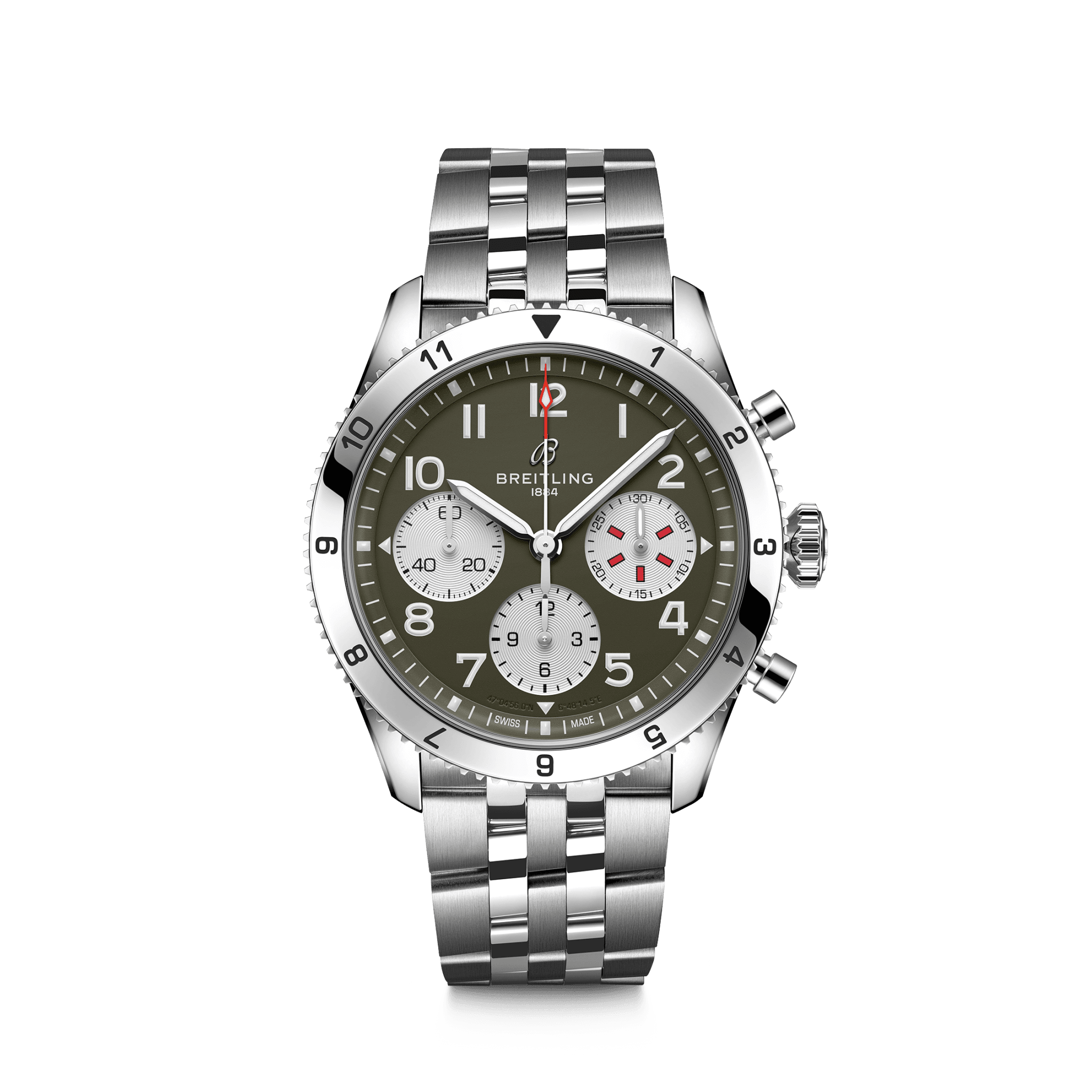 [ SPEC ]掲載されている商品はラインナップのご紹介となっております。カタログ番号 0000003180 サイズ 42mm 文字盤 ブラック 機能 クロノグラフ インデックス アラビア ケース素材 ステンレススチール ベルト ブレスレット ベゼル 回転ベゼル 日付 日付なし 防水性 100M 動力 自動巻き