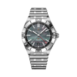 クロノマット オートマチック GMT 40は、現代の旅人たちに向けてブライトリングが贈る一本です。 デュアルタイム機能を備えながらも、洗練されたエレガンスを湛え、旅のあらゆるシーンに寄り添う万能なデザインに仕上がっています。ビジネスミーティングの場にも、オフタイムのアクティブな時間にも調和する堅牢性と上質さを兼ね備えた、まさに「旅のための一本」です。 このジャパンリミテッドエディションでは、ブラックのマザー・オブ・パール ダイヤルにゴールドのブライトリング“B”ロゴをあしらい、実用性と真珠母貝の自然な美しさ、唯一性を融合させています。赤いGMT針が24時間スケール上で際立ち、第2タイムゾーンを容易に読み取ることができ、昼夜の区別も直感的に把握できます。 ムーブメントにはブライトリング キャリバー32を搭載。GMT針と24時間リングが精密に連動し、ブランドを象徴するオニオン型のリュウズにより、操作性も快適です。200メートルの防水性能を誇るこのモデルは、陸・海・空を自在に行き来する真のマルチパーパス・スポーツウォッチ。バランスの取れた40mmケースと控えめながら洗練されたデザインは、「どんなシーンにもふさわしい時計」というクロノマットの理念を体現しています。 日本国内150本限定。希少性と上質さを兼ね備えた特別なタイムピースです。