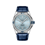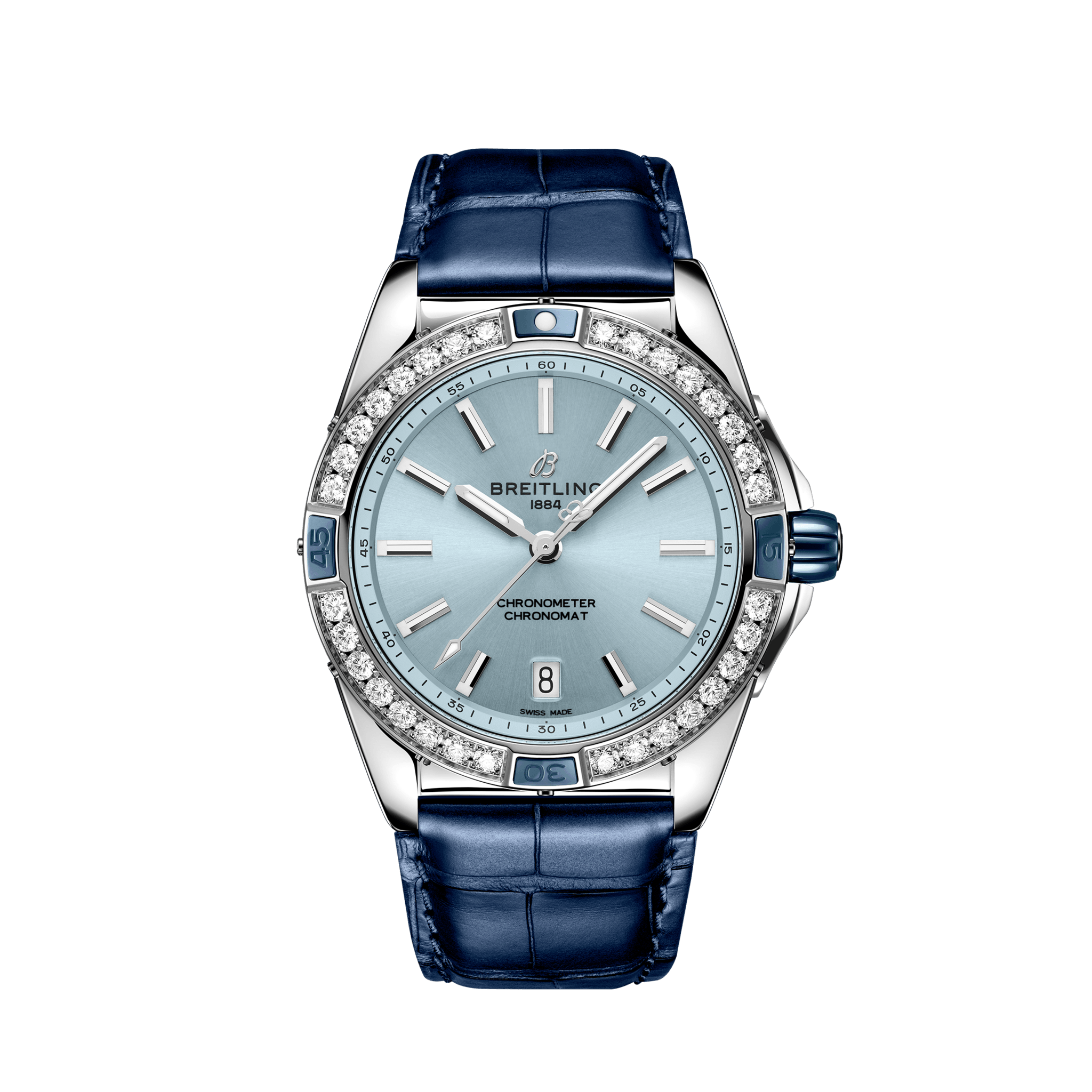 [ SPEC ]掲載されている商品はラインナップのご紹介となっております。カタログ番号 0000001904 サイズ 38mm 文字盤 ブルー 機能 3針 インデックス バー ケース素材 ステンレススチール ベルト アリゲーターストラップ ベゼル ダイヤモンドベゼル 日付 日付あり 防水性 100M 動力 自動巻き