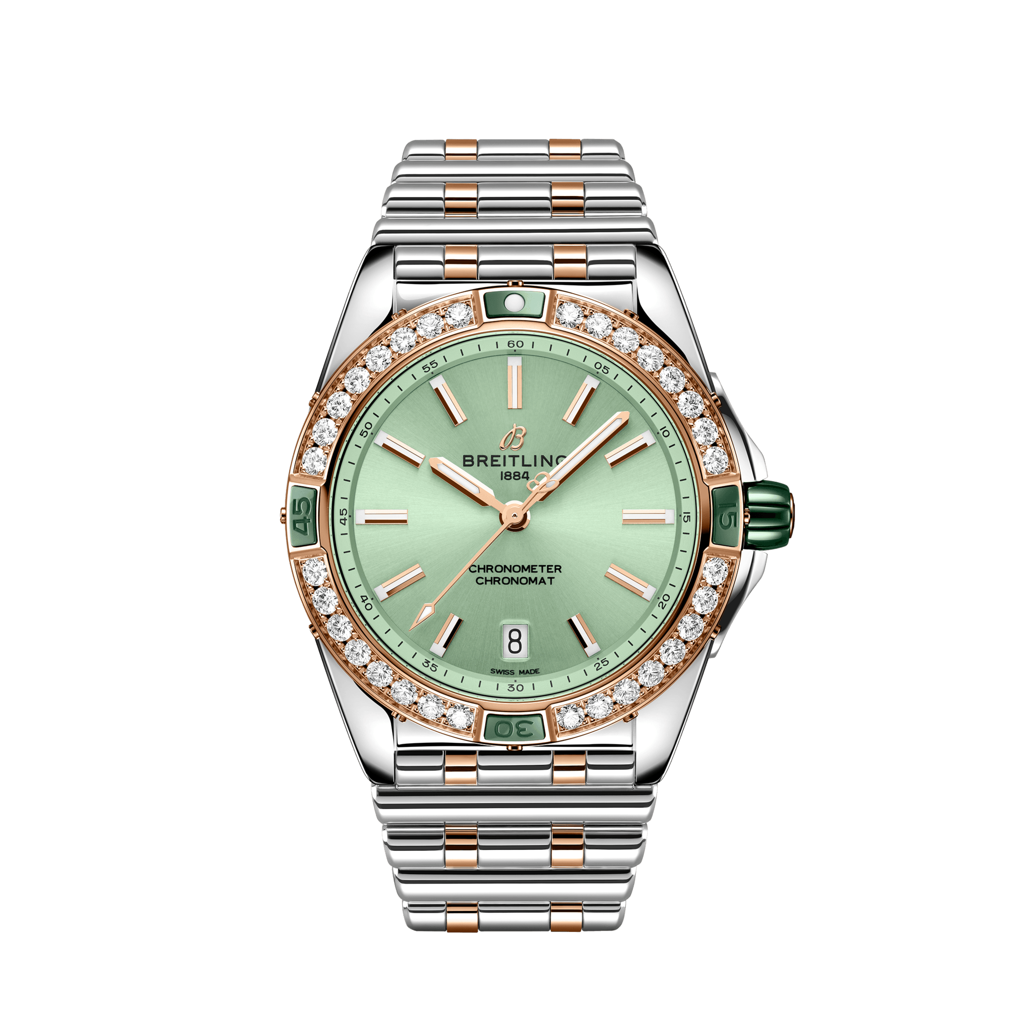 [ SPEC ]掲載されている商品はラインナップのご紹介となっております。カタログ番号 0000001907 サイズ 38mm 文字盤 グリーン 機能 3針 インデックス バー ケース素材 ステンレススチール+18Kレッドゴールド ベルト ブレスレット ベゼル ダイヤモンドベゼル 日付 日付あり 防水性 100M 動力 自動巻き