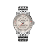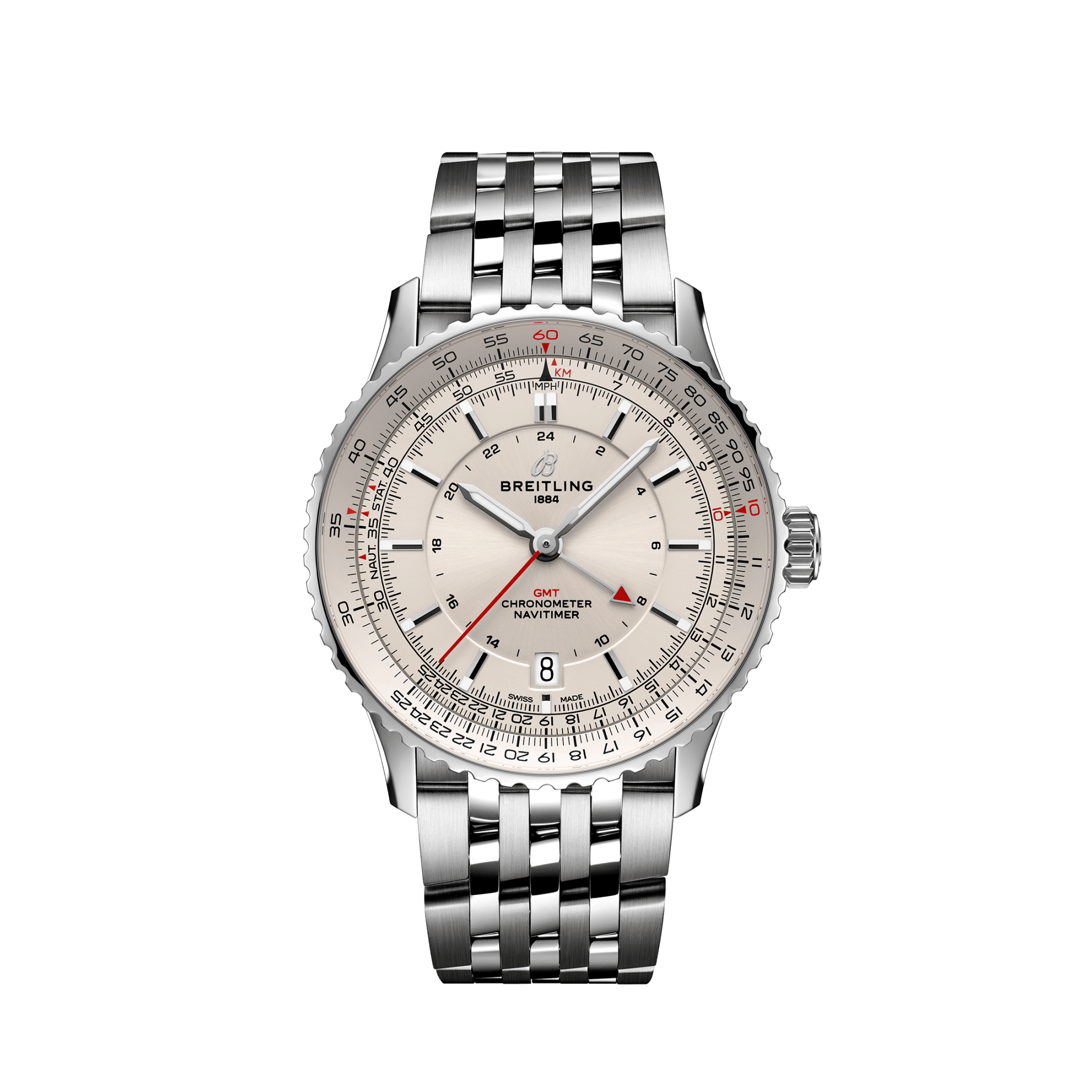 [ SPEC ]掲載されている商品はラインナップのご紹介となっております。カタログ番号 0000004626 サイズ 41mm 文字盤 シルバー 機能 GMT インデックス バー ケース素材 ステンレススチール ベルト ブレスレット ベゼル 回転計算尺ベゼル 日付 日付あり 防水性 30M 動力 自動巻き