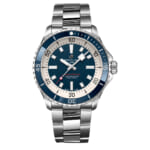 [ SPEC ]掲載されている商品はラインナップのご紹介となっております。カタログ番号 0000001411 サイズ 42mm 文字盤 ブルー 機能 3針 インデックス バー ケース素材 ステンレススチール ベルト ブレスレット ベゼル 逆回転防止ベゼル 日付 日付なし 防水性 300M 動力 自動巻き