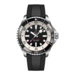 [ SPEC ]掲載されている商品はラインナップのご紹介となっております。カタログ番号 0000001416 サイズ 44mm 文字盤 ブラック 機能 3針 インデックス バー ケース素材 ステンレススチール ベルト ラバーストラップ ベゼル 逆回転防止ベゼル 日付 日付なし 防水性 300M 動力 自動巻き