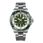 [ SPEC ]掲載されている商品はラインナップのご紹介となっております。カタログ番号 0000001420 サイズ 44mm 文字盤 グリーン 機能 3針 インデックス バー ケース素材 ステンレススチール ベルト ブレスレット ベゼル 逆回転防止ベゼル 日付 日付なし 防水性 300M 動力 自動巻き