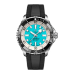 [ SPEC ]掲載されている商品はラインナップのご紹介となっております。カタログ番号 0000001421 サイズ 44mm 文字盤 ブルー 機能 3針 インデックス バー ケース素材 ステンレススチール ベルト ラバーストラップ ベゼル 逆回転防止ベゼル 日付 日付なし 防水性 300M 動力 自動巻き