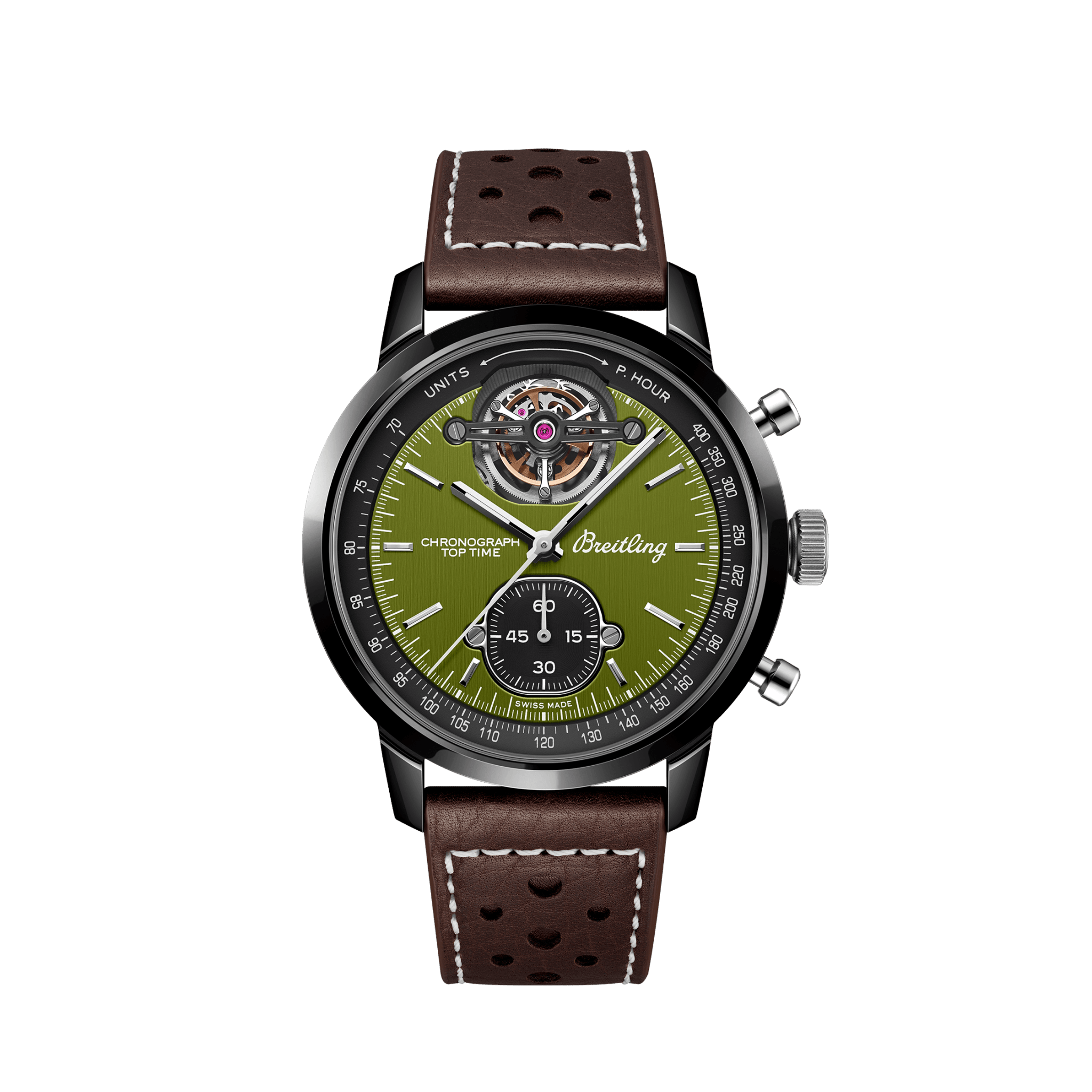 [ SPEC ]掲載されている商品はラインナップのご紹介となっております。カタログ番号 0000005718 サイズ 44mm 文字盤 グリーン 機能 クロノグラフ・トゥールビヨン インデックス バー ケース素材 セラミック ベルト カーフストラップ ベゼル ノーマル 日付 日付なし 防水性 100M 動力 自動巻き(マニュファクチュール)