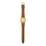 ゴールドケースにブラウンレザーバンドを組み合わせ、クラシカルでエレガントな印象を与え温かみのある上品なスタイルを楽しめます。バンドにクラシカルな型押しデザインが施されており、細部にまでこだわった高級感を感じさせます。