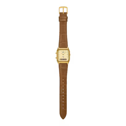 ベースモデルは角型フェイスにアナログ時計とデジタル表示を組み合わせた人気のAQ-230。日常生活用防水やストップウオッチ、アラーム等、便利な機能も備えています。