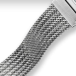 メッシュバンドをベースに縦方向にプレスを入れ、立体感のあるデザインを実現しました。腕元に洗練された印象を添えつつ快適な装着感を実現します。