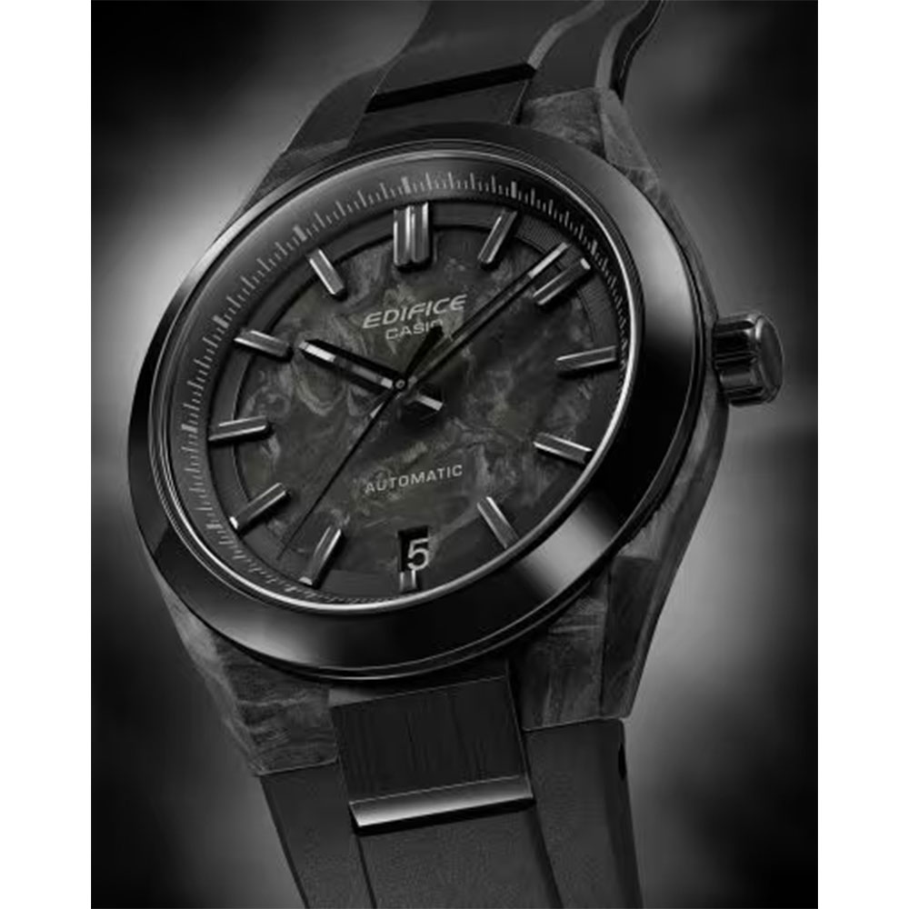[ SPEC ]掲載されている商品はラインナップのご紹介となっております。カタログ番号 0000007140 サイズ 40mm 文字盤 カーボン 機能 3針・バックスケルトン インデックス バー ベルト 樹脂バンド 日付 日付あり 防水性 100M 動力 自動巻き