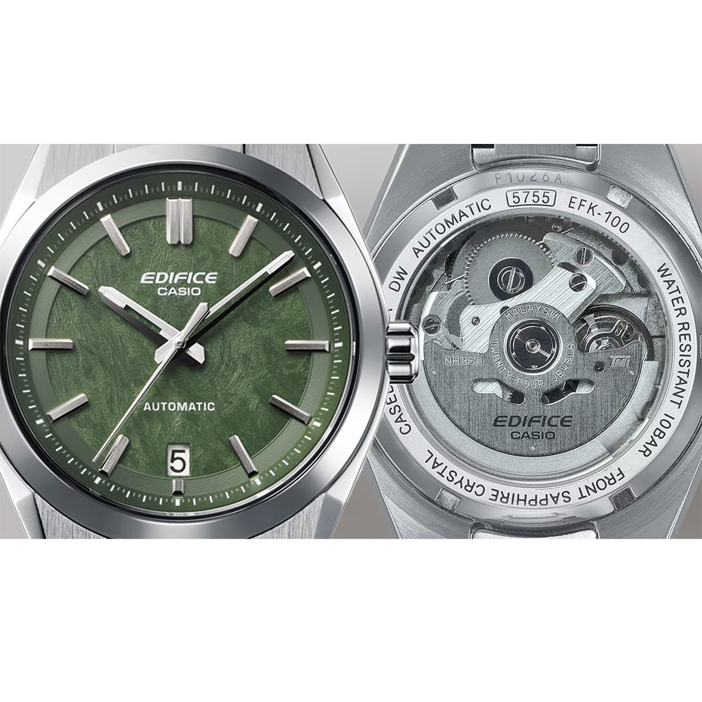 [ SPEC ]掲載されている商品はラインナップのご紹介となっております。カタログ番号 0000007143 サイズ 39mm 文字盤 グリーン 機能 3針・バックスケルトン インデックス バー ケース素材 ステンレススチール ベルト ブレスレット 日付 日付あり 防水性 100M 動力 自動巻き