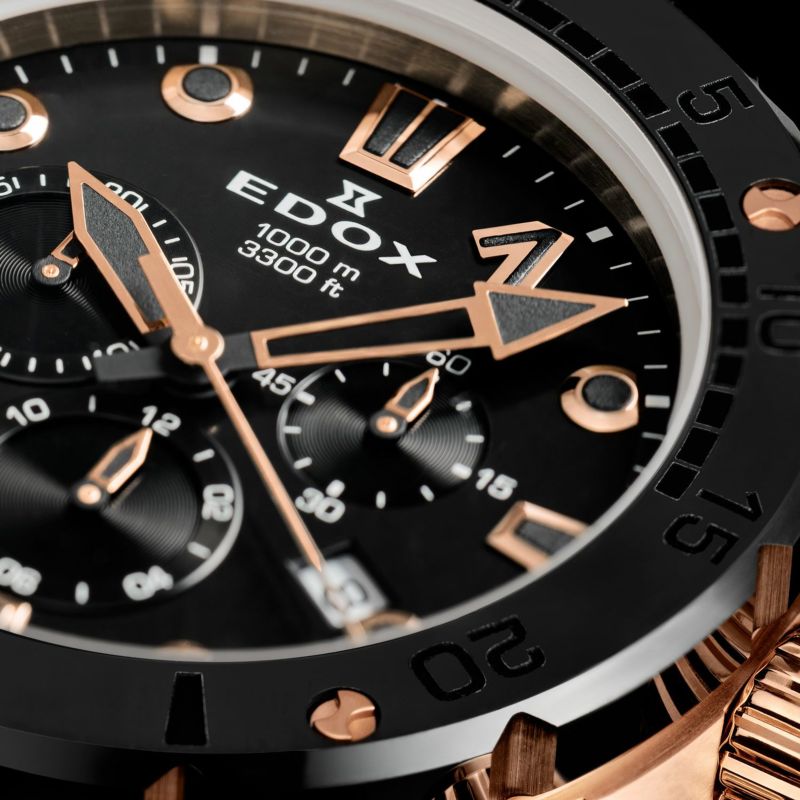 [ SPEC ]カタログ番号 0000004032 サイズ 45.0mm 文字盤 ブラック 機能 クロノグラフ・ダイバー インデックス ドット ケース素材 チタン+ローズゴールドPVD ベルト ラバーストラップ ベゼル 逆回転防止ベゼル 日付 日付あり 防水性 1000M 動力 クォーツ パワーボートレースのタフでダイナミックな世界観を表現した、機能性と防水性に優れたダイバーズウォッチ。掲載されている商品はラインナップのご紹介となっております。