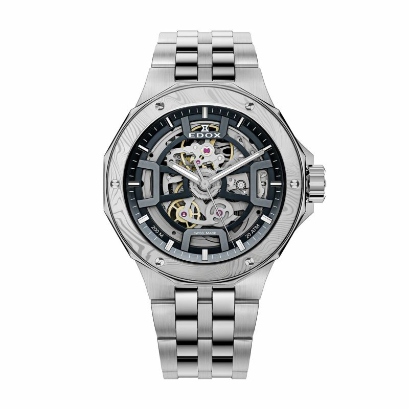 [ SPEC ]掲載されている商品はラインナップのご紹介となっております。カタログ番号 0000007149 サイズ 40mm 文字盤 シルバー 機能 3針・バックスケルトン インデックス バー ケース素材 ステンレススチール ベルト ブレスレット ベゼル ノーマル 防水性 200M 動力 自動巻き
