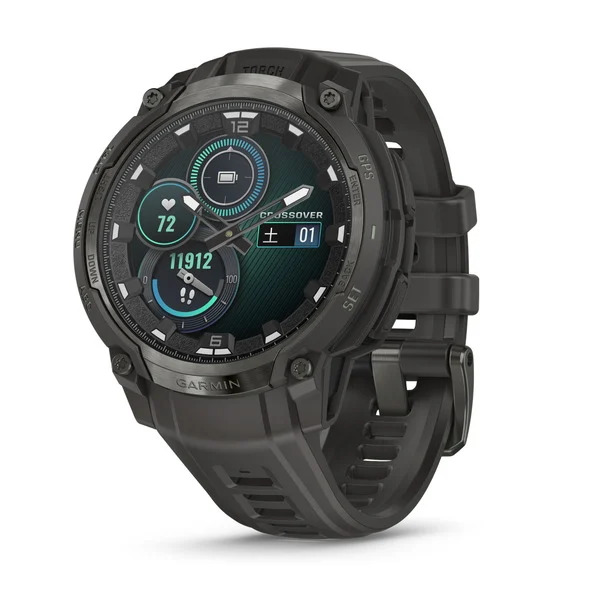 Instinct Crossover AMOLEDは鮮やかなAMOLEDディスプレイとアナログ針が融合したハイブリッドスマートウォッチです。MIL規格に準拠し、あらゆるシーンに応えるタフさを備えています。GPSやコンパスを使ってアウトドアを楽しんだり、通知機能や健康管理機能で日常をスマートに過ごすことができます。