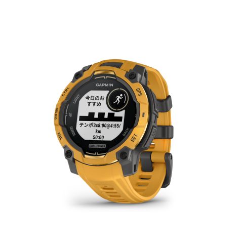 Instinct(インスティンクト) 3はどんな場所でも活躍するタフネスGPSスマートウォッチです。GPSやコンパスを使ってアウトドアを楽しんだり、通知機能や健康管理機能で日常をスマートに過ごすことができます。直感を信じ、自分の道を進むあなたの相棒となります。Dual Powerモデルはソーラー充電により超ロングバッテリーを実現したモデルです。