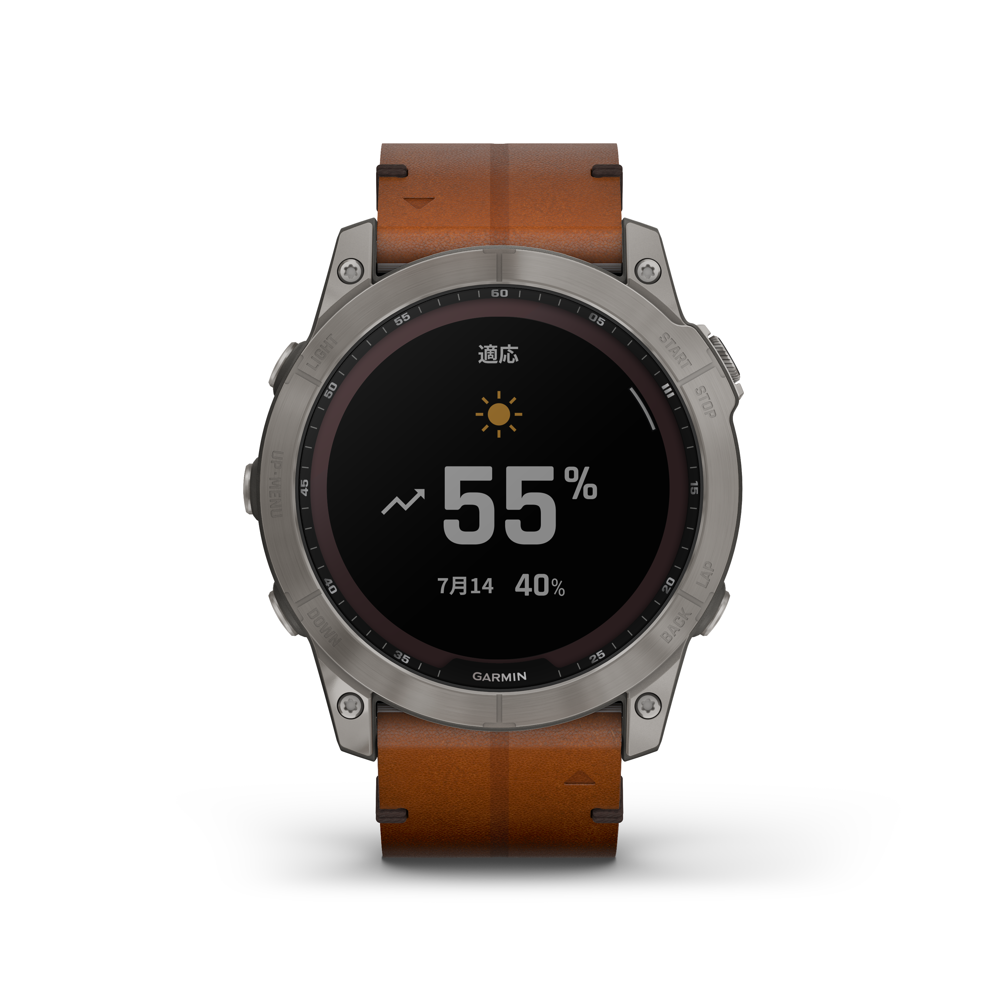 アーカイブ(生産終了、手配不可)fēnix 7X Sapphire Dual Power Ti / Chestnut Leather Band