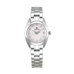 [ SPEC ]掲載されている商品はラインナップのご紹介となっております。カタログ番号 2727 サイズ 26mm 文字盤 MOP(マザーオブパール) 機能 3針 インデックス ダイヤモンド ケース素材 ステンレススチール ベルト ブレスレット ベゼル ノーマル 日付 日付あり 防水性 100M 動力 クォーツ