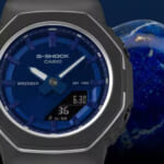 ラピスラズリをイメージし、石の美しい斑点をパールプリントでさりげなく表現しました。文字板にはメタル素材を採用し質感をアップ。天然色のような美しい発色を実現しています。
