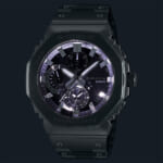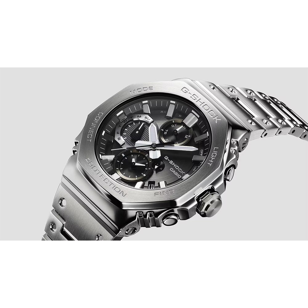 インデックスやインダイアルリングには微細加工技術による繊細な造形と、蒸着加工を施すことで高い質感に仕上げました。ねじロック式のりゅうずは、ベゼルと同じ八角形状にデザイン。耐衝撃性能をそのままに小型化にも貢献しています。高密度実装技術によりスリムで高機能なモジュールを搭載することで、薄型化を実現。着け心地の良さにもこだわりました。