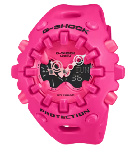 [ SPEC ]カタログ番号 0000006932 サイズ 58.2mm 文字盤 ピンク 機能 2針・クロノグラフ インデックス バー ケース素材 樹脂 ベルト 樹脂バンド ベゼル ノーマル 日付 日付あり 防水性 200M 動力 クォーツ タフネスを追求し進化を続けるG-SHOCKから、エッジの効いたパーツを組み合わせたフォルム、大型全面液晶、ショックリリース針など斬新な発想でG-SHOCKのアイデンティティである「強さ」を形にしたモデルです。掲載されている商品はラインナップのご紹介となっております。