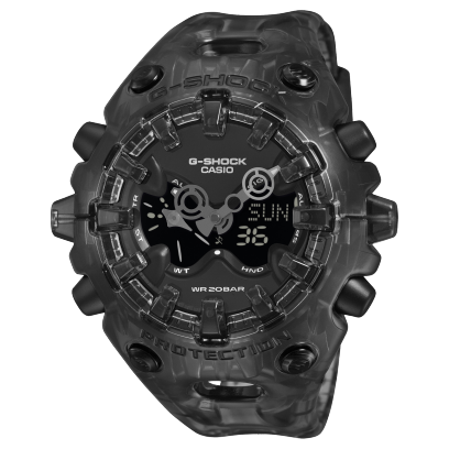 エッジの効いたパーツを組み合わせた有機的な外装フォルムや大型の全面液晶、ショックリリース針など斬新な発想でG-SHOCKのアイデンティティである「強さ」を形にしたGA-V01シリーズから、TRANSPARENT PACKのご紹介です。