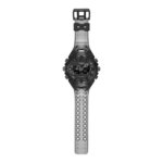 カラフルなスケルトンボディを纏い、フェイスにはオープンワーク(透かしの部分を作る技法)を施したダイアルとフルスクリーンLCDのレイヤー構造を採用。