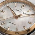 [ SPEC ]掲載されている商品はラインナップのご紹介となっております。カタログ番号 0000002643 サイズ 34mm 文字盤 MOP(マザーオブパール) 機能 3針・バックスケルトン インデックス バー ケース素材 ステンレススチール ベルト その他 ベゼル 60分表記ベゼル 日付 日付なし 防水性 100M 動力 自動巻き