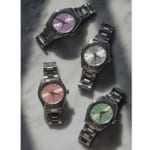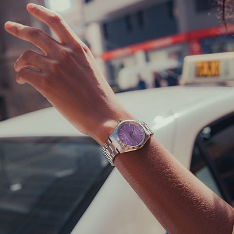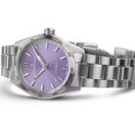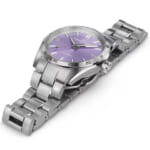 [ SPEC ]掲載されている商品はラインナップのご紹介となっております。カタログ番号 0000004666 サイズ 34mm 文字盤 パープル 機能 3針・バックスケルトン インデックス バー ケース素材 ステンレススチール ベルト ブレスレット ベゼル 60分表記ベゼル 日付 日付なし 防水性 100M 動力 自動巻き