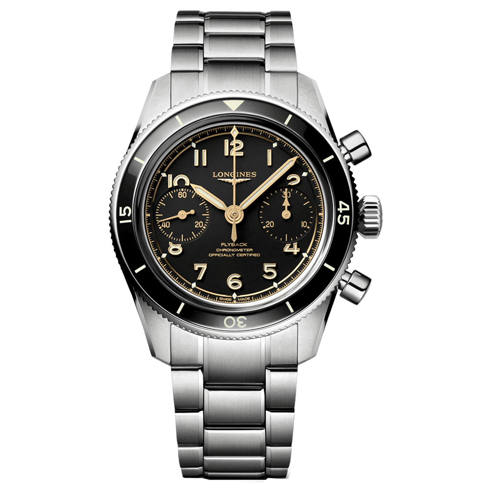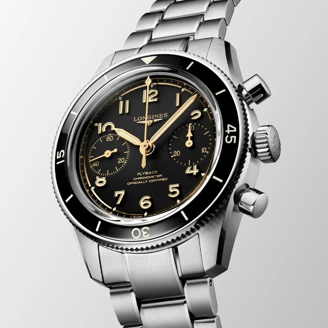 [ SPEC ]掲載されている商品はラインナップのご紹介となっております。カタログ番号 0000007220 サイズ 39.5mm 文字盤 ブラック 機能 フライバック・バックスケルトン インデックス アラビア ケース素材 ステンレススチール ベルト ブレスレット ベゼル 回転ベゼル 日付 日付なし 防水性 100M 動力 手巻き