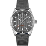 [ SPEC ]掲載されている商品はラインナップのご紹介となっております。カタログ番号 144276 サイズ 42mm 文字盤 グレー 機能 3針・バックスケルトン インデックス バー ケース素材 ステンレススチール ベルト ファブリック ベゼル 逆回転防止ベゼル 日付 日付あり 防水性 100M 動力 自動巻き