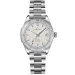 [ SPEC ]掲載されている商品はラインナップのご紹介となっております。カタログ番号 144610 サイズ 37mm 文字盤 ホワイト 機能 3針・バックスケルトン インデックス バー ケース素材 ステンレススチール ベルト ブレスレット ベゼル 逆回転防止ベゼル 日付 日付あり 防水性 100M 動力 自動巻き