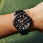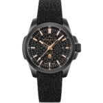 [ SPEC ]掲載されている商品はラインナップのご紹介となっております。カタログ番号 0000002716 サイズ 40mm 文字盤 ブラック 機能 3針 インデックス バー ケース素材 ステンレススチール+ブラックDLCコーティング ベルト ラバーストラップ ベゼル ノーマル 日付 日付あり 防水性 100M 動力 自動巻き