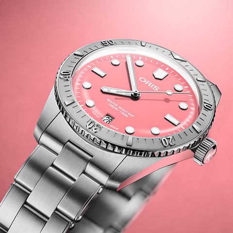 [ SPEC ]掲載されている商品はラインナップのご紹介となっております。カタログ番号 0000003347 サイズ 38mm 文字盤 ピンク 機能 ダイバー・3針 インデックス ドット ケース素材 ステンレススチール ベルト ブレスレット ベゼル 逆回転防止ベゼル 日付 日付あり 防水性 100M 動力 自動巻き