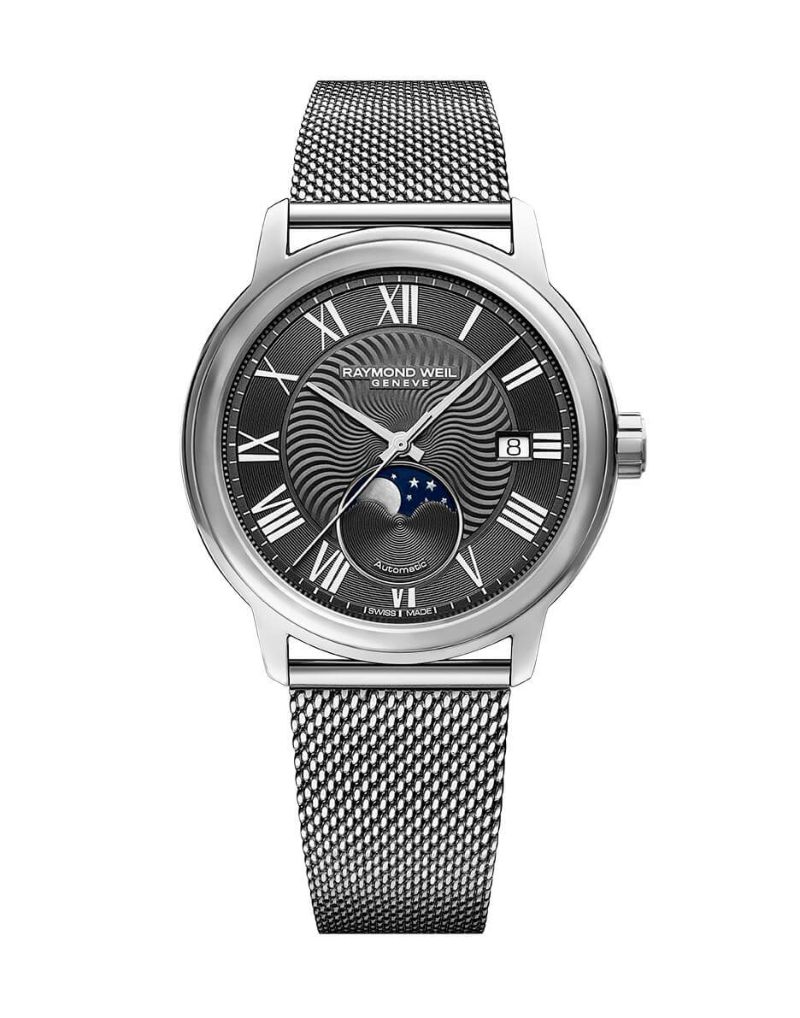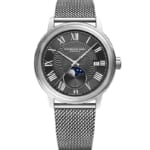 [ SPEC ]掲載されている商品はラインナップのご紹介となっております。カタログ番号 0000004523 サイズ 39.5mm 文字盤 グレー 機能 3針・ムーンフェイズ インデックス ローマン ケース素材 ステンレススチール ベルト ブレスレット ベゼル ノーマル 日付 日付あり 防水性 50M 動力 自動巻き