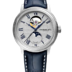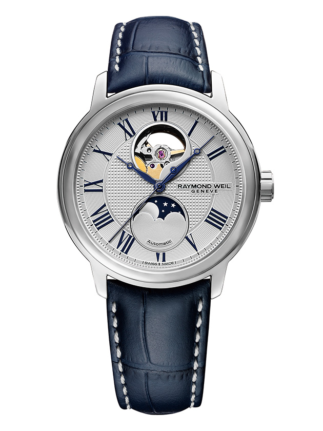 [ SPEC ]掲載されている商品はラインナップのご紹介となっております。カタログ番号 164469 サイズ 39.5mm 文字盤 シルバー 機能 ムーンフェイズ・バックスケルトン インデックス ローマン ケース素材 ステンレススチール ベルト カーフストラップ 防水性 50M 動力 自動巻き