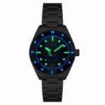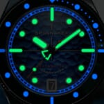 ドットインデックスやレイルウェイインデックス、十字ライン、ボールドな時分針など、ダイバーズのデザインコードとヴィンテージな風合いを併せ持ったデザインも個性的です。