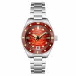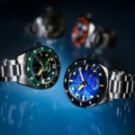 ドットインデックスやレイルウェイインデックス、十字ライン、ボールドな時分針など、ダイバーズのデザインコードとヴィンテージな風合いを併せ持ったデザインも個性的です。